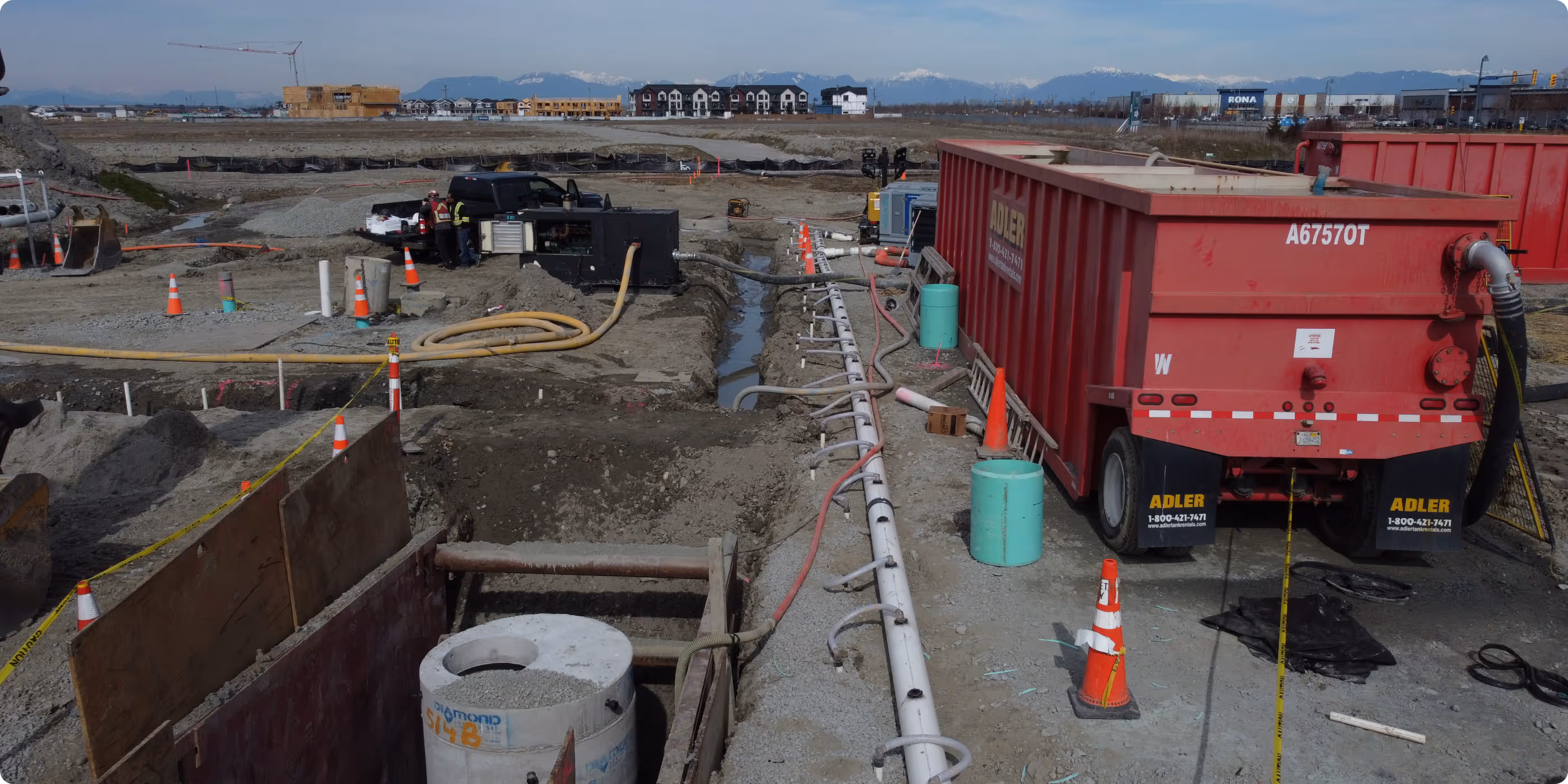 Pump systems designed to handle high-volume dewatering on active sites, ensuring efficiency and stability throughout the project.