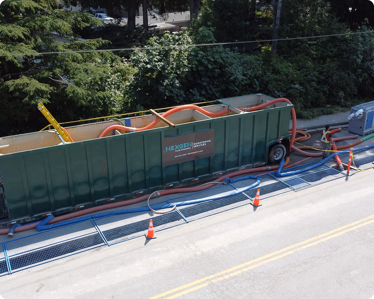 Our schematic guide provides a clear visual breakdown of the dewatering process and the equipment used at each stage. It outlines how frac tanks, pumps, piping, and treatment systems work together to manage site water safely and efficiently.